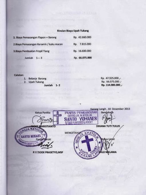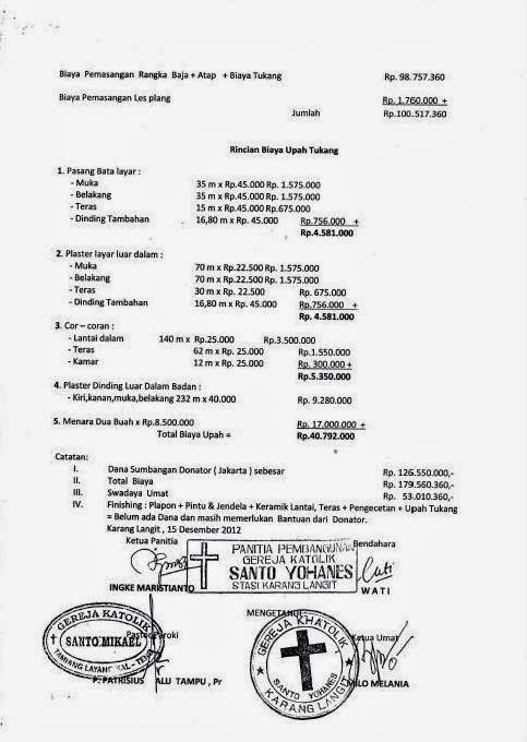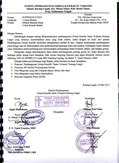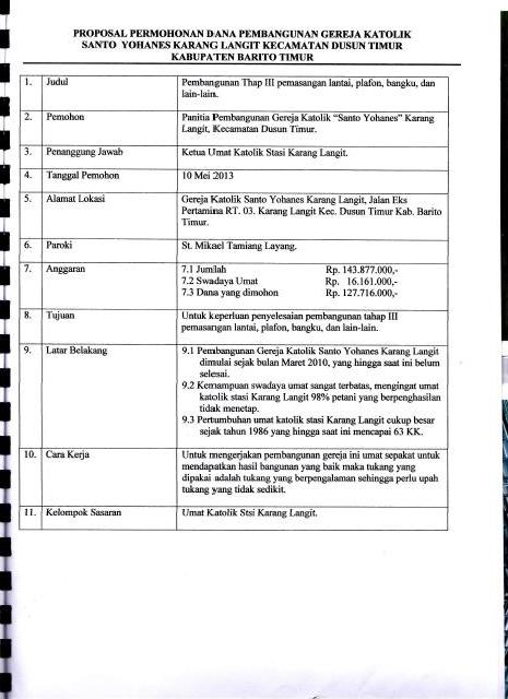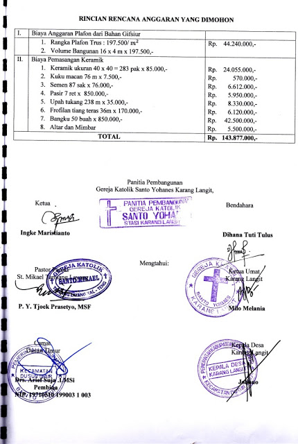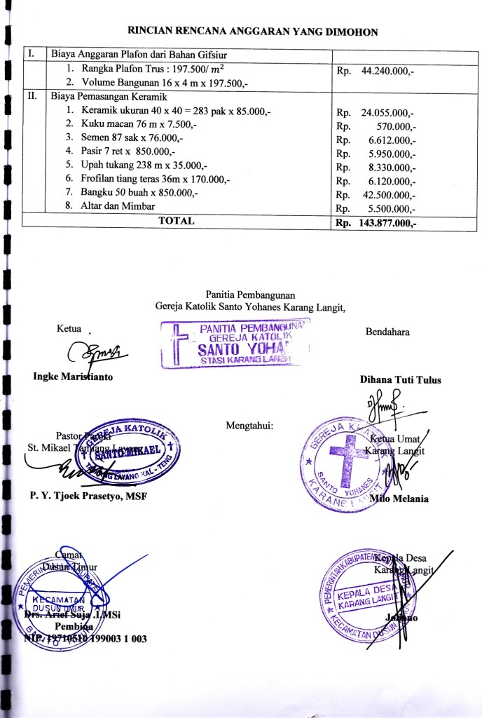 Proposal Permohonan Bantuan Dana dari Panitia Pembangunan Gereja Katolik Stasi St. Yohanes, Karang Langit |