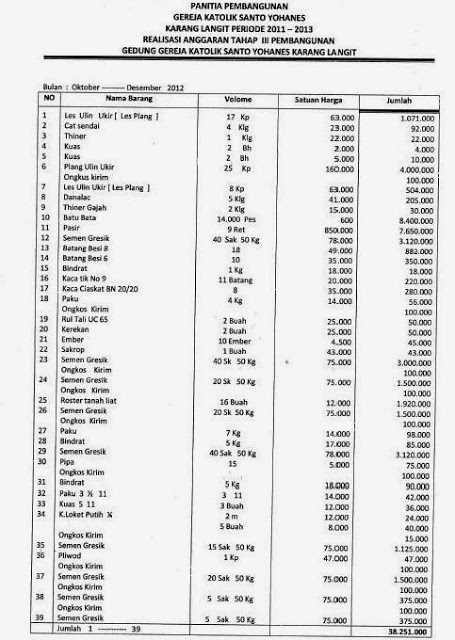 Berikut ini adalah laporan keuangan PPGK untuk Gereja St. Yohanes, Karang Langit