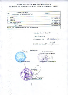 Syukur kepada Allah atas terselesaikannya kegiatan pencarian dana untuk Gereja Katolik St. Petrus, Lahurus, Atambua. Jumlah total dana bantuan yang terkumpul adalah sebanyak