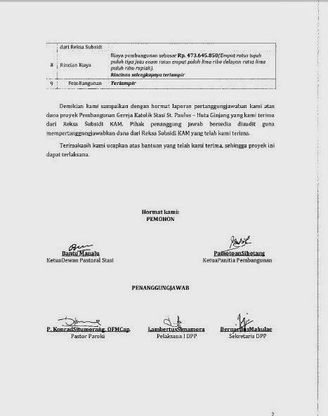 Syukur kepada Allah atas terselesaikannya kegiatan pencarian dana untuk Gereja Katolik St. Paulus, Huta Ginjang, Humbang Hasundutan (Tahap II). Jumlah total dana bantuan yang terkumpul adalah sebanyak