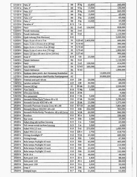 Berikut ini adalah daftar bantuan yang masuk melalui Rekening PPGK: