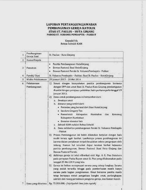 Laporan Akhir Pembangunan Gereja St. Paulus, Huta Ginjang, Pakkat (Dari Gereja)