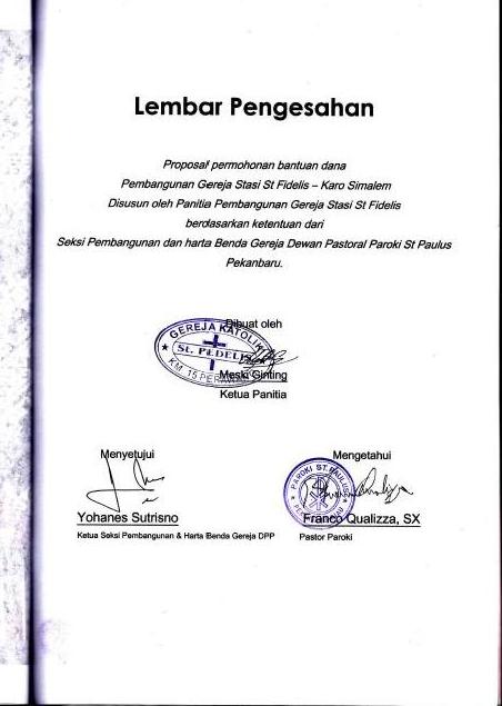 Surat Resmi Ucapan Terima Kasih Penerimaan Bantuan dari Paroki Labuh Baru, Pekanbaru |