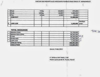 Gereja Katolik St. Bernardus, Pageso Tobbu, Sumba Barat Daya. Jumlah total dana bantuan