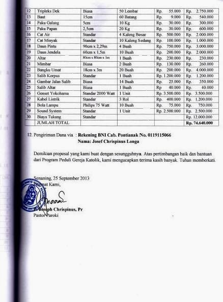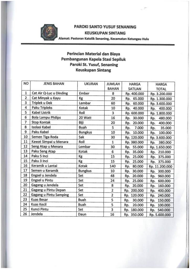 Gereja Katolik St. Theodorus, Sepiluk, Sintang. Jumlah total dana bantuan