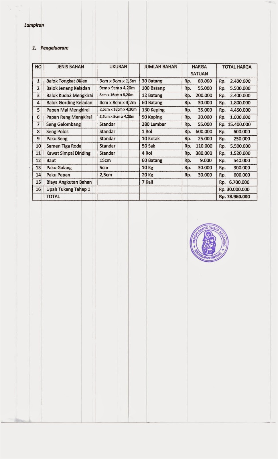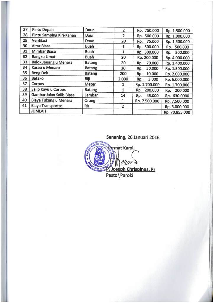 Laporan Pembangunan Gereja St. Theodorus, Sepiluk Tahap I (Dari Gereja)