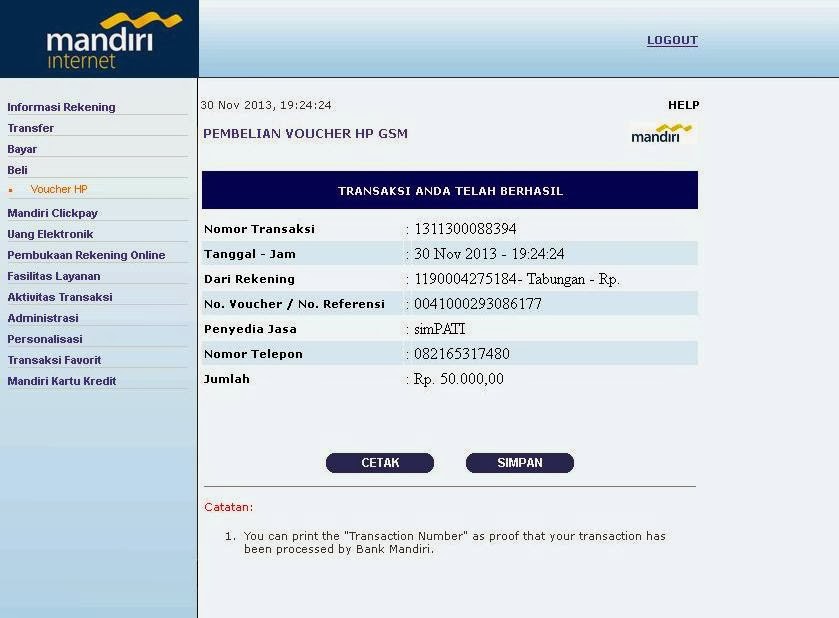 BELLA FEBRINA SINAGA | Mandiri | 02-Des-2013 | 1.000.000 | 131.879.443 |