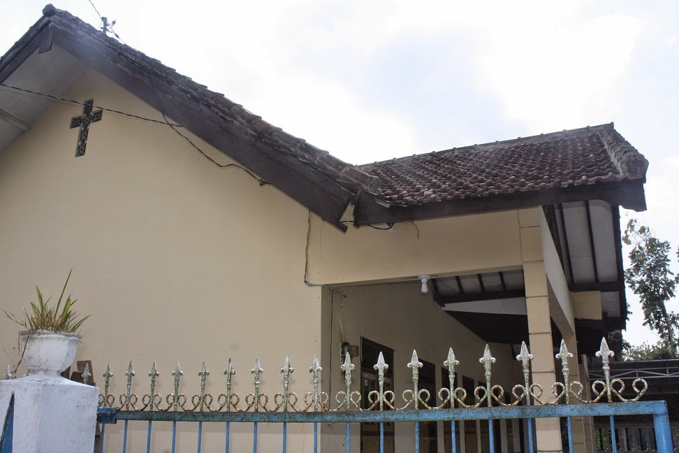 Bagian luar gereja - Dinding gereja sudah lapuk (triplek) |