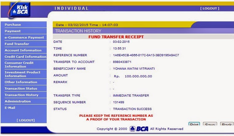 Yohanes A. S. | BCA | 25-Jan-2015 | 2.000.000 | 13.997.168 |