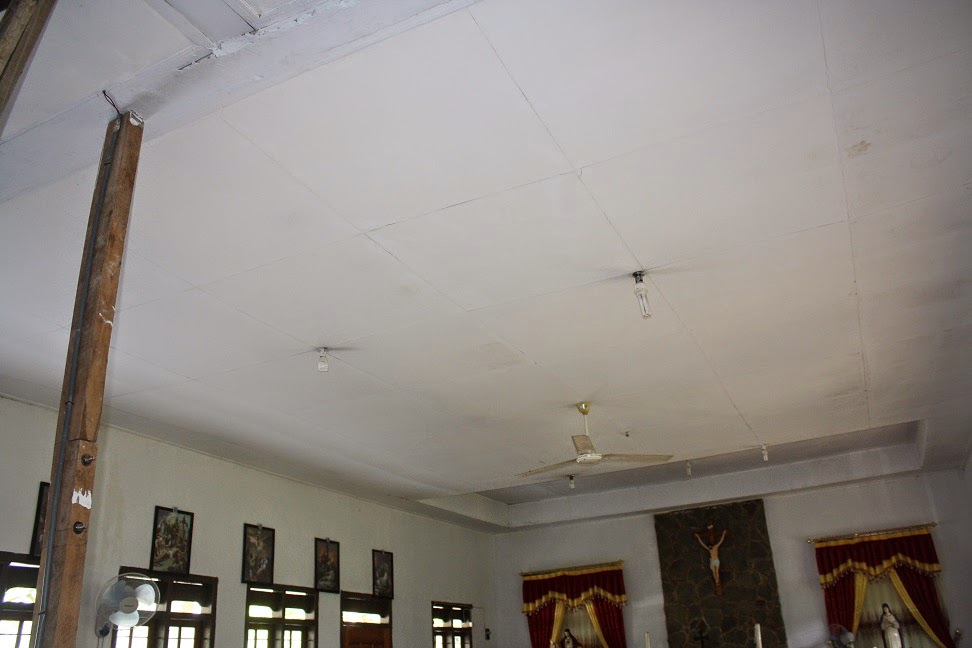 Interior Gereja - Kuda-kuda atap, seng, sudah bocor |
