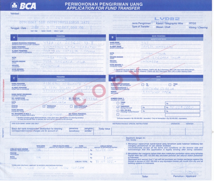 Bukti Transfer I Dana Bantuan untuk Stasi Lukumihi TAHAP I sebesar Rp 70.000.000,00. |