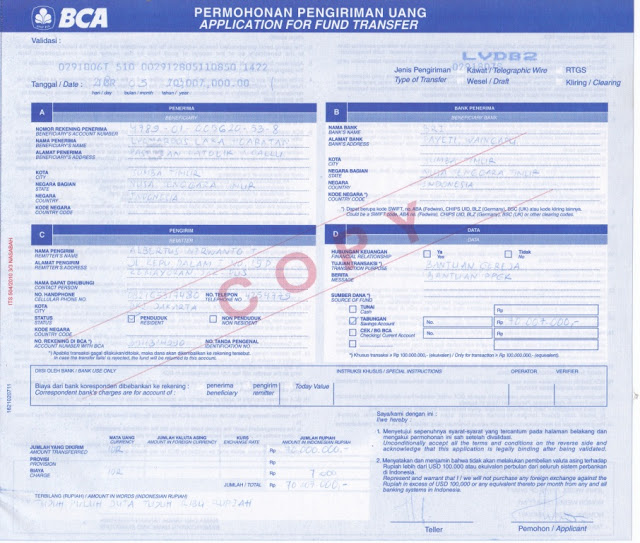 Transfer I, 28 Mei 2013, sebesar Rp 70.000.000,- (termasuk dana GLR 20 juta), bukti transfer terlampir di bawah ini: