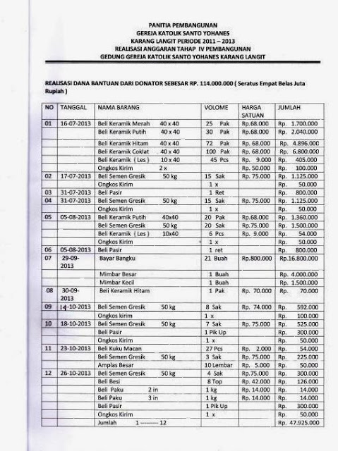 Berikut ini adalah laporan keuangan PPGK untuk Gereja St. Yohanes, Karang Langit