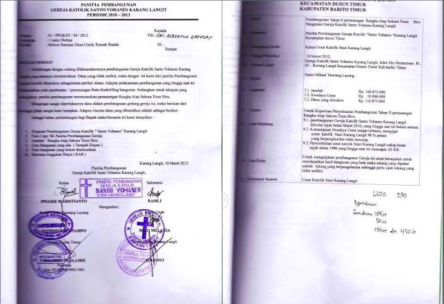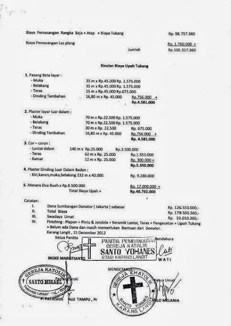 Proposal Permohonan Bantuan Dana dari Panitia Pembangunan Gereja Katolik Stasi St. Yohanes, Karang Langit |