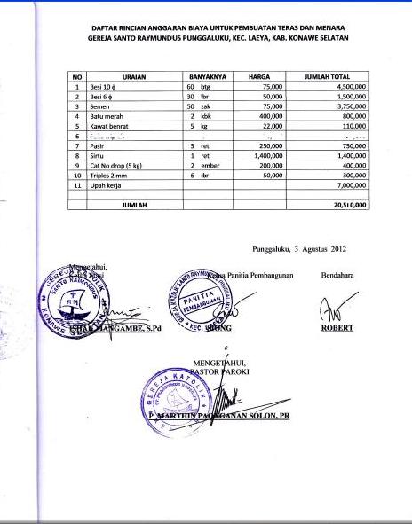 BRI Unit Sentral Pasar Kota: 3055- 01- 001758- 50- 1 a/n Martinus Paonganan Solon (Pastor Paroki)