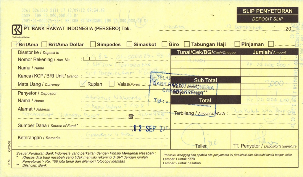 | Rina Lusiana | BCA | 18-Apr-2012 | 250.000 | 2.715.000 |