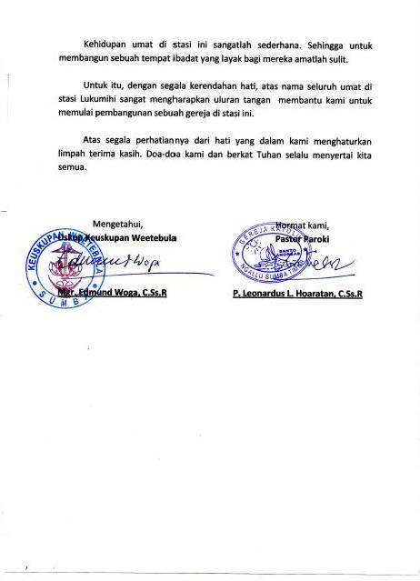 - Jumlah dana bantuan yang masuk melalui Rekening Gereja (BRI): Rp 5.771.112,00