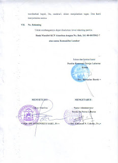 - Jumlah dana bantuan yang masuk melalui Rekening Gereja (BRI): Rp 11.020.000,00