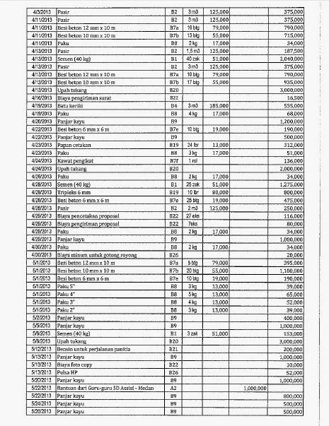 Berikut ini adalah daftar bantuan yang masuk melalui Rekening PPGK: