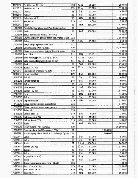 *Setiap Gereja memiliki saldo akhir PPGK. Saldo akhir akan digunakan untuk menjaga rekening PPGK tetap terisi, dan biaya transportasi mengunjungi gereja ketika selesai diperbaiki. Hal ini dikarenakan PPGK tidak memiliki sponsor-sponsor untuk kegiatan operasional.