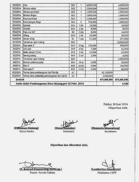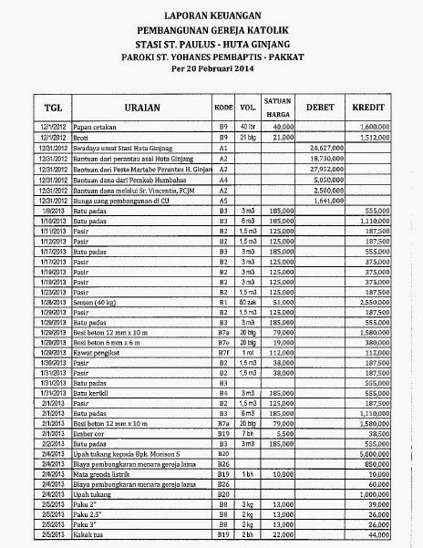 Berikut ini adalah laporan keuangan PPGK untuk Gereja St. Paulus, Huta Ginjang