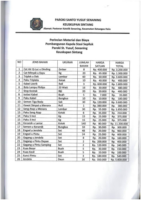 Syukur kepada Allah atas terselesaikannya kegiatan pencarian dana untuk Gereja Katolik St. Theodorus, Sepiluk, Sintang. Jumlah total dana bantuan yang terkumpul adalah sebanyak