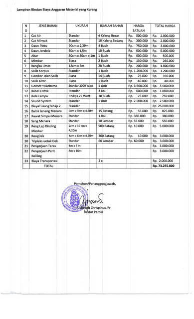 Gereja Katolik St. Theodorus, Sepiluk, Sintang. Jumlah total dana bantuan