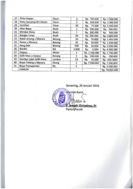 Laporan Pembangunan Gereja St. Theodorus, Sepiluk Tahap I (Dari Gereja)