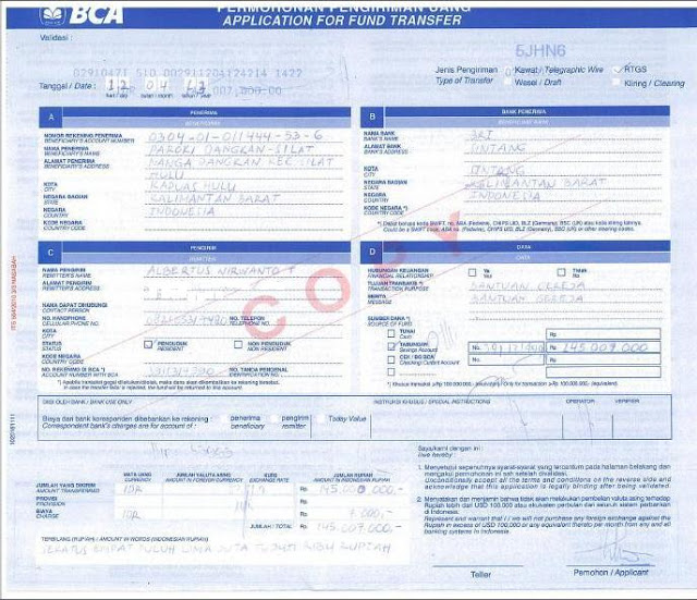 Dana yang masuk melalui Rekening PPGK di atas telah kami transfer ke Rekening Paroki Dangkan Silat sebesar