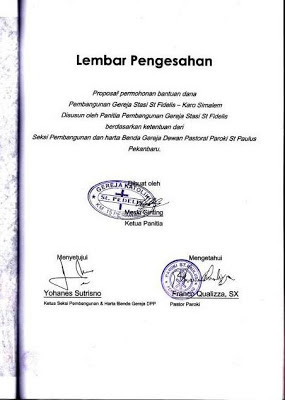 Gereja Katolik St. Fidelis, Karo Simalem, Siak. Jumlah total dana bantuan