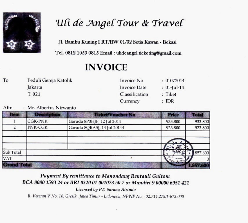 Mandiri Cab. Pasar Baru: 119-000-427518-4 a/n Albertus Nirwanto T
