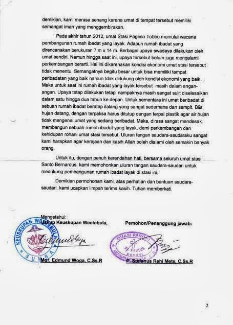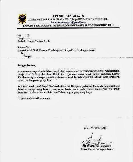 Surat Resmi Ucapan Terima Kasih Penerimaan Bantuan dari Paroki Karuni, Sumba Barat Daya |
