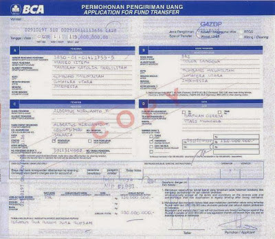 Bukti Transfer Dana Bantuan untuk Paroki Parlilitan sebesar Rp 120.000.000,00. |