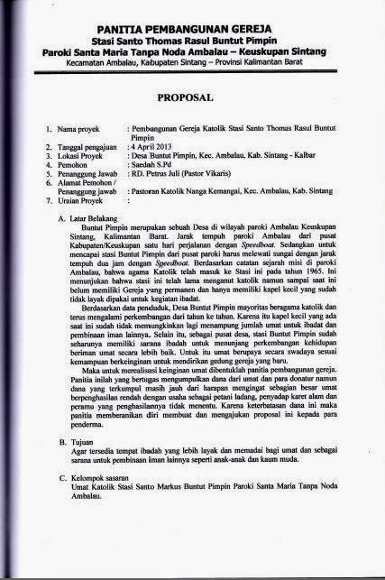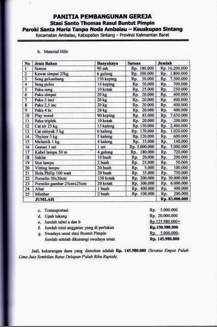 Surat Resmi Ucapan Terima Kasih Penerimaan Bantuan dari Paroki Ambalau, Sintang, Kalimantan Barat |