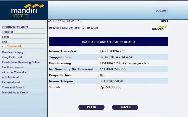 Yasinta Arianti | Mandiri | 12-Jun-2014 | 50.000 | 199.003.398 |