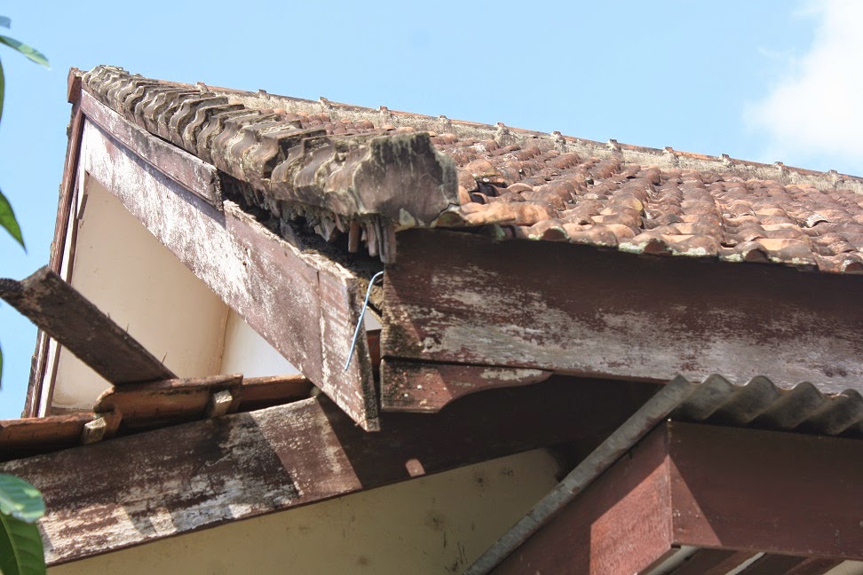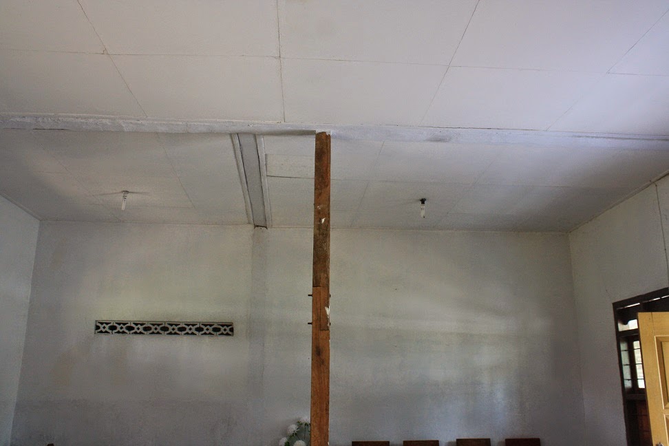 Interior Gereja - Kuda-kuda atap, seng, sudah bocor |
