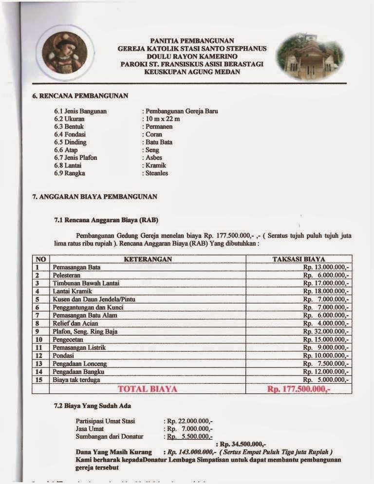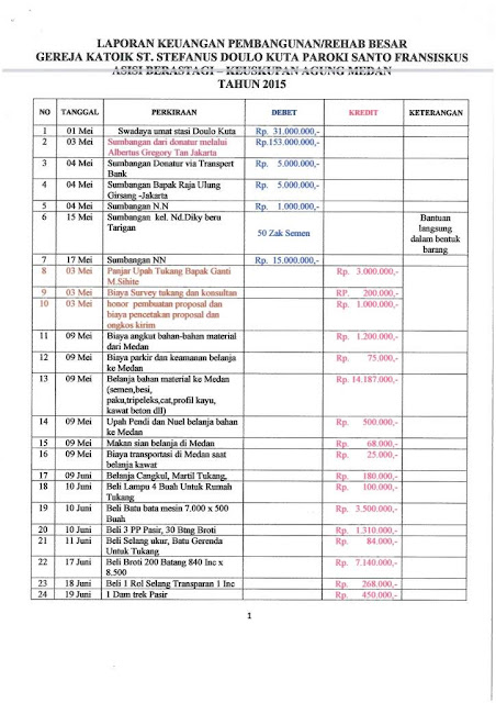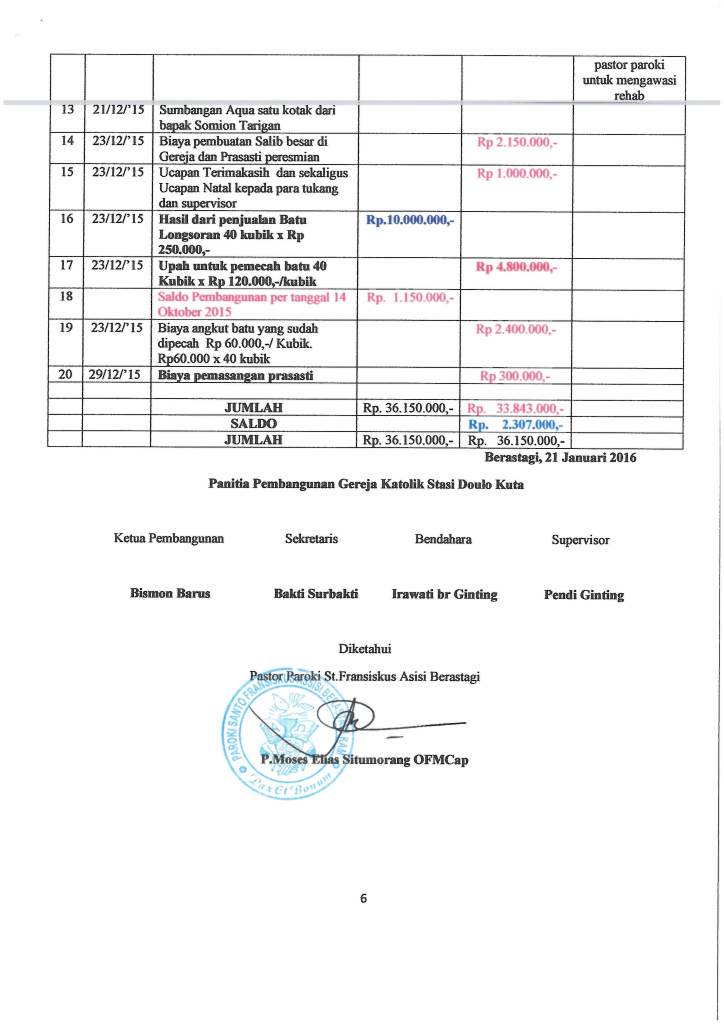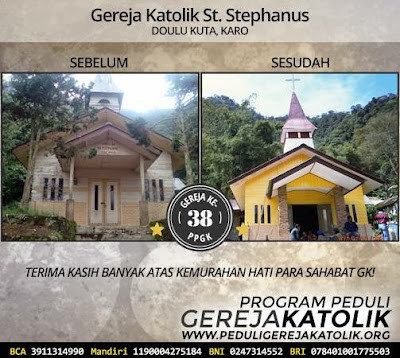 Syukur kepada Allah atas terselesaikannya kegiatan pencarian dana untuk Gereja Katolik St. Stephanus, Doulu Kuta, Karo, Keuskupan Agung Medan. Jumlah total dana bantuan yang terkumpul adalah sebanyak Rp 156.139.532,- dengan rincian sebagai berikut: