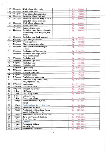 *Setiap Gereja memiliki saldo akhir PPGK. Saldo akhir akan digunakan untuk menjaga rekening PPGK tetap terisi, dan biaya transportasi mengunjungi gereja ketika selesai diperbaiki. Hal ini dikarenakan PPGK tidak memiliki sponsor-sponsor untuk kegiatan operasional. Setiap penggunaan saldo akhir PPGK akan dilaporkan secara berkala agar semua donatur tetap mengetahui rincian penggunaannya.